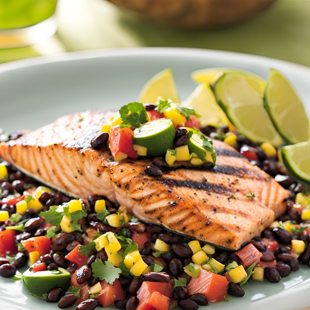 Grillowany Łosoś w Salsie z Czarnej Fasoli