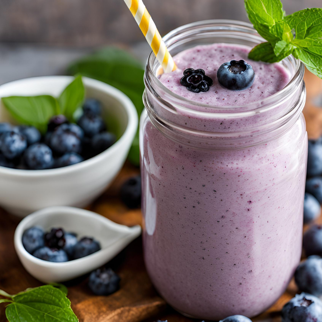 8. Podawaj i ciesz się zdrowym i orzeźwiającym koktajlem z maślanki, borówek i jagód.