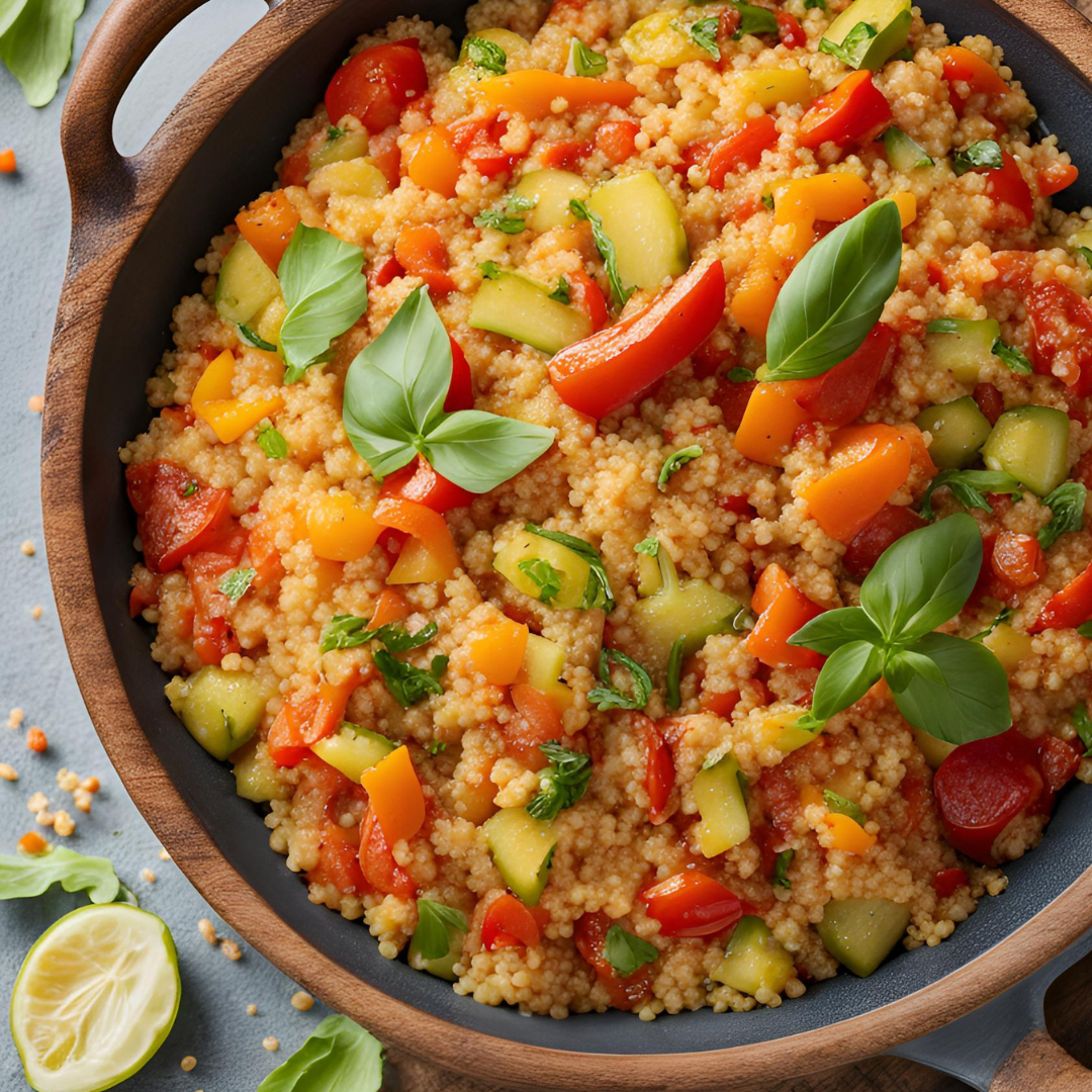 Ten kuskus z duszonymi warzywami to smaczna i zdrowa propozycja na obiad. Smacznego!
